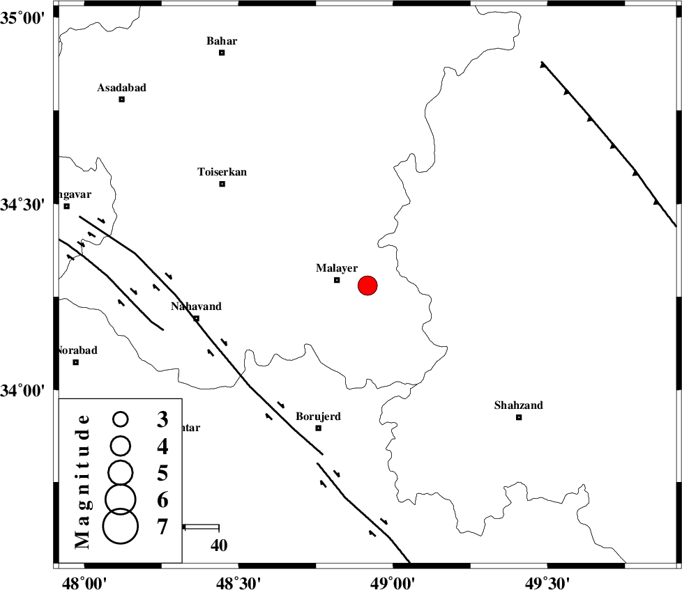 NAHAVAND_F (Length: 102 km) , Distance to epicenter: 46 km | |