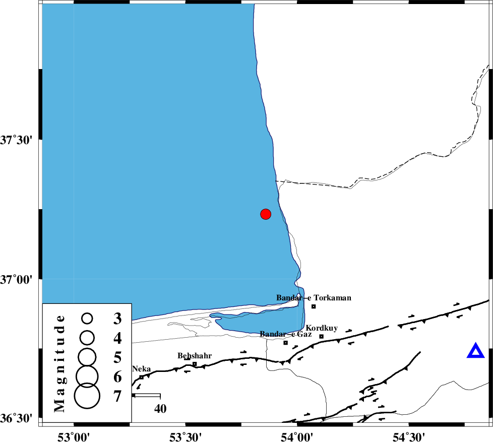 KHAZAR_F (Length: 523 km) , Distance to epicenter: 55 km | |