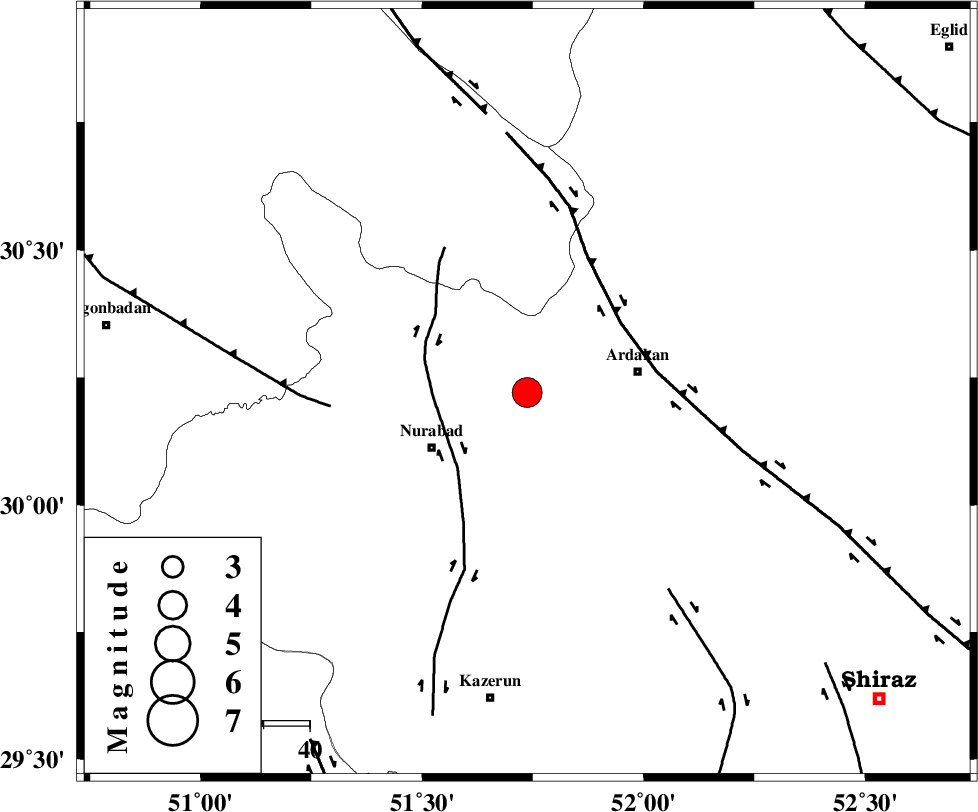 | KAZERUN_F (Length: 96 km) , Distance to epicenter: 20 km | |