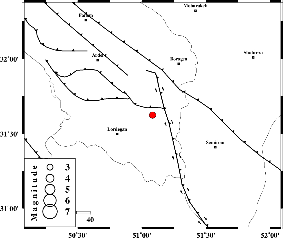 SABZKUH_F (Length: 67 km) , Distance to epicenter: 21 km