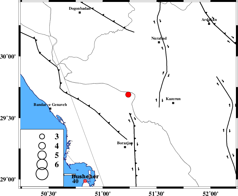 | KAZERUN_F (Length: 96 km) , Distance to epicenter: 28 km | |