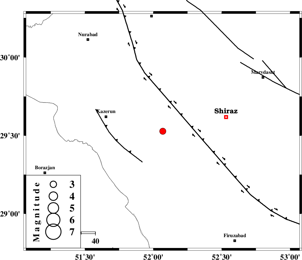 | KAZERUN_F (Length: 96 km) , Distance to epicenter: 53 km | |
