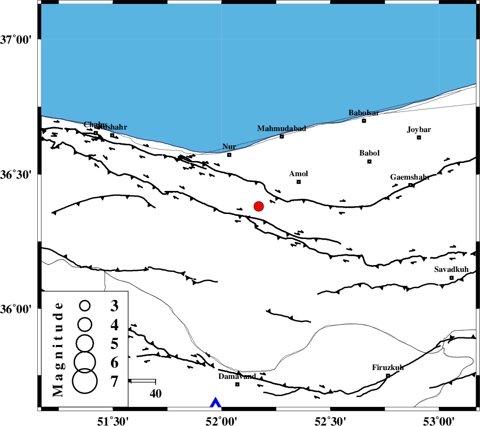 | N_ALBORZ_F (Length: 360 km) , Distance to epicenter: 6 km | |