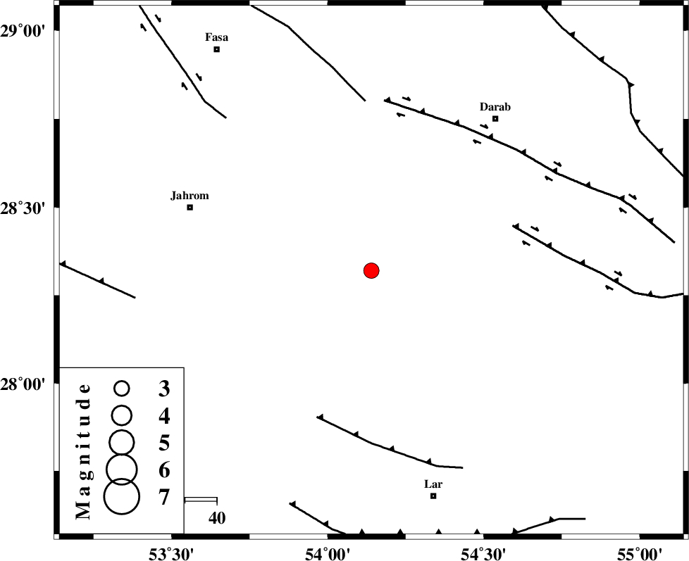 BAKHTEGAN_F (Length: 94 km) , Distance to epicenter: 54 km | |