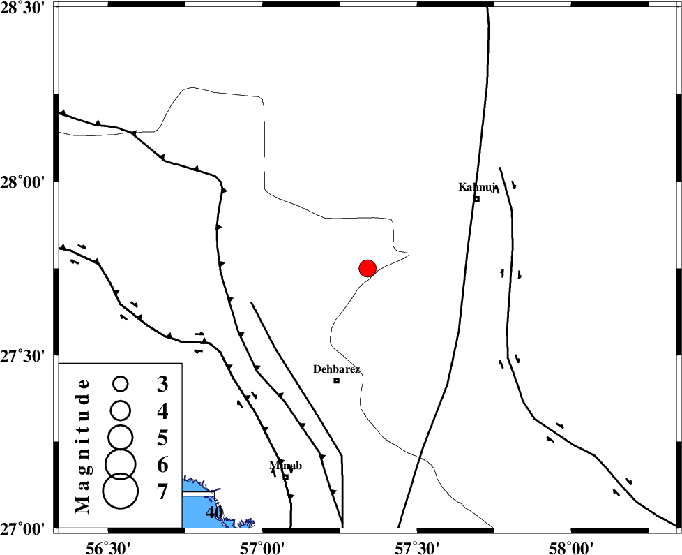 ZENDAN_MINAB_F_Z1 (Length: 183 km) , Distance to epicenter: 39 km | |