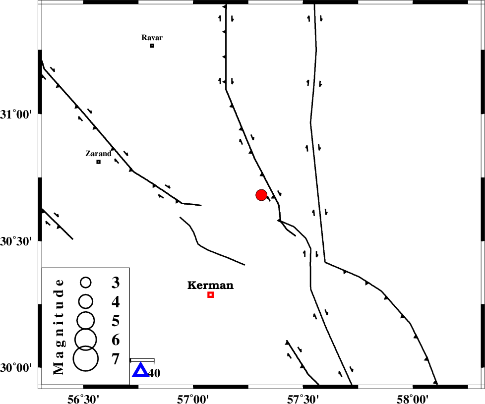 GOLBAF_SIRCH_F (Length: 114 km) , Distance to epicenter: 14 km | |
