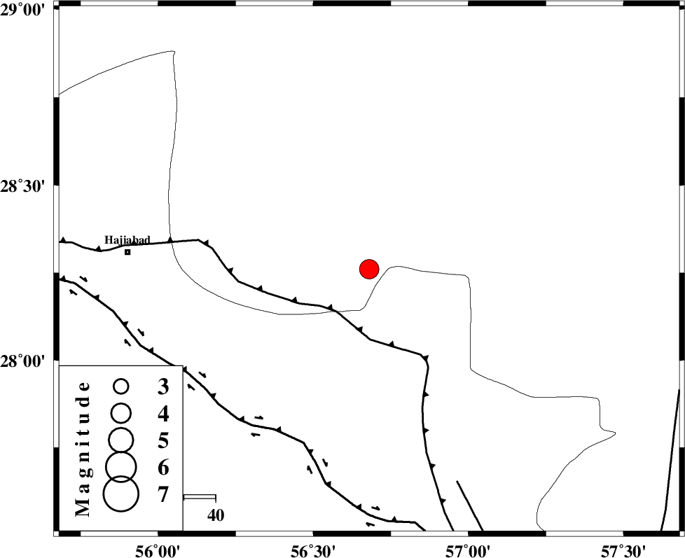 ZENDAN_MINAB_F_Z1 (Length: 183 km) , Distance to epicenter: 73 km | |