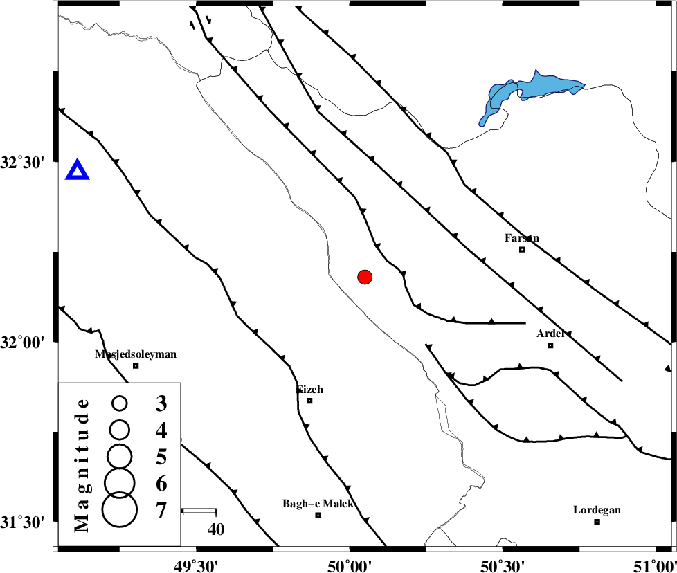ZARDKUH_F (Length: 139 km) , Distance to epicenter: 9 km | |