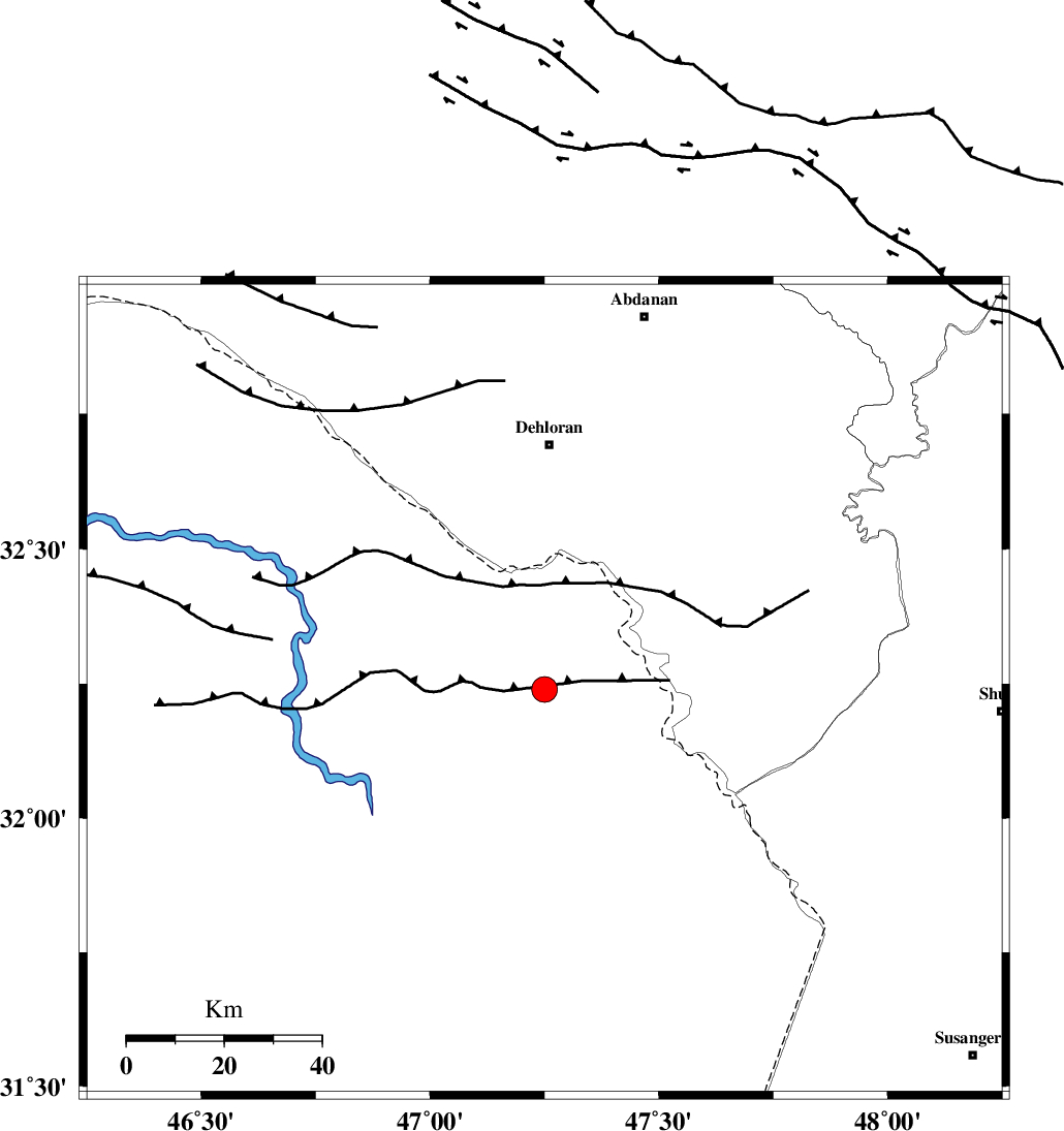 DEZFUL_EMBAYMENT (Length: 228 km) , Distance to epicenter: 94 km | |