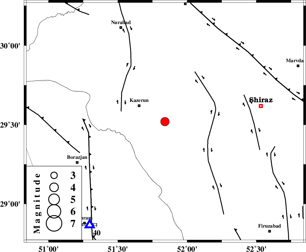 KAZERUN_F (Length: 96 km) , Distance to epicenter: 31 km | |