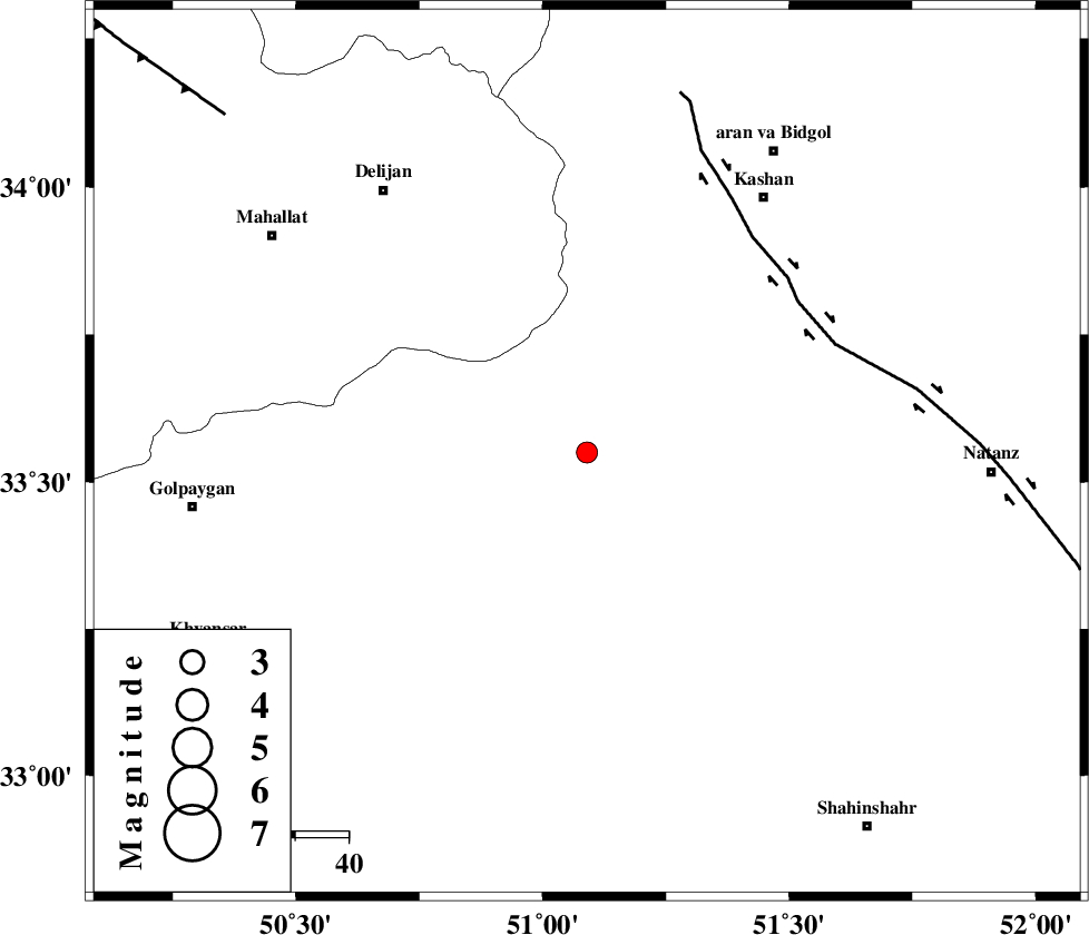 KASHAN_F (Length: 44 km) , Distance to epicenter: 49 km | |