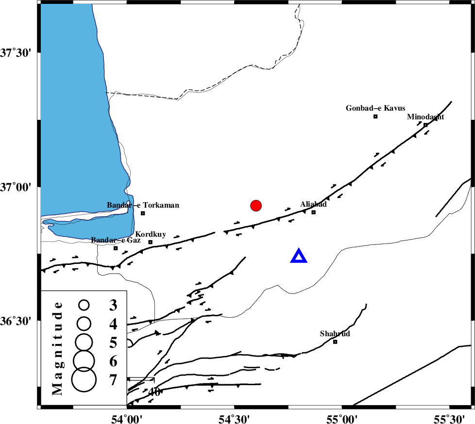N_ALBORZ_F (Length: 360 km) , Distance to epicenter: 40 km | |