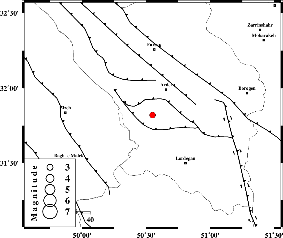 ZARDKUH_F (Length: 139 km) , Distance to epicenter: 26 km | |
