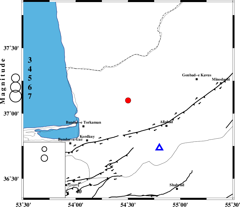 N_ALBORZ_F (Length: 360 km) , Distance to epicenter: 55 km | |