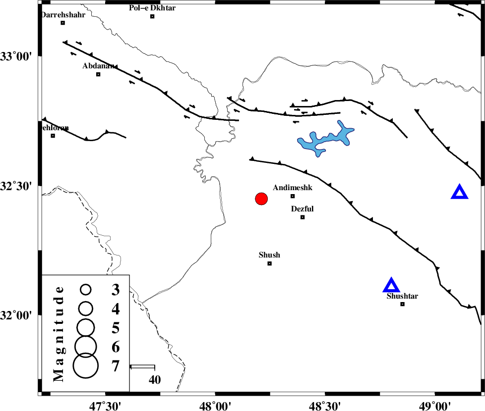 DEZFUL_EMBAYMENT (Length: 228 km) , Distance to epicenter: 18 km | |