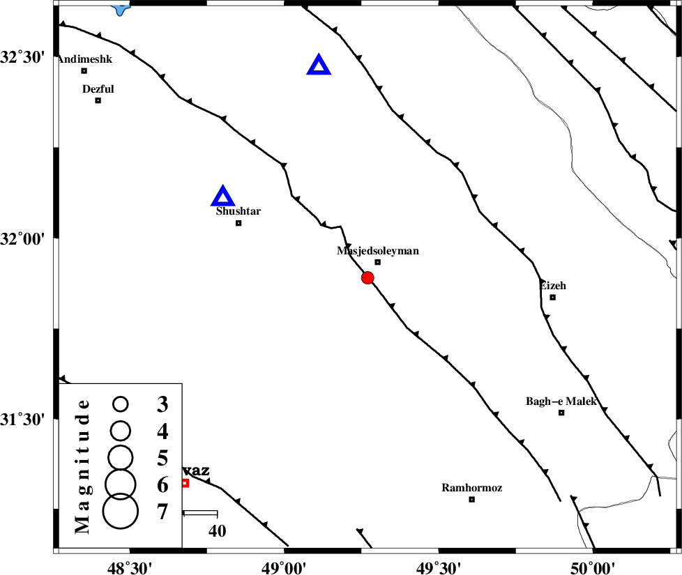 AGHAJARI_F (Length: 88 km) , Distance to epicenter: 77 km | |