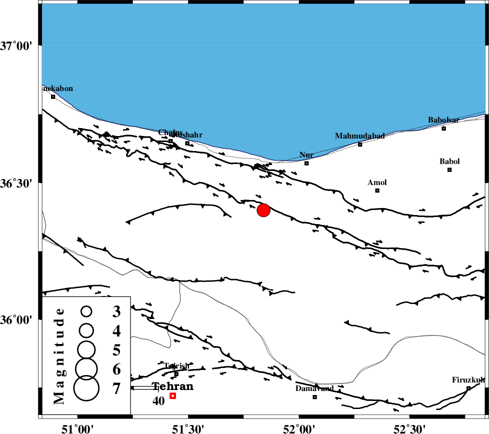 N_ALBORZ_F (Length: 360 km) , Distance to epicenter: 2 km | |