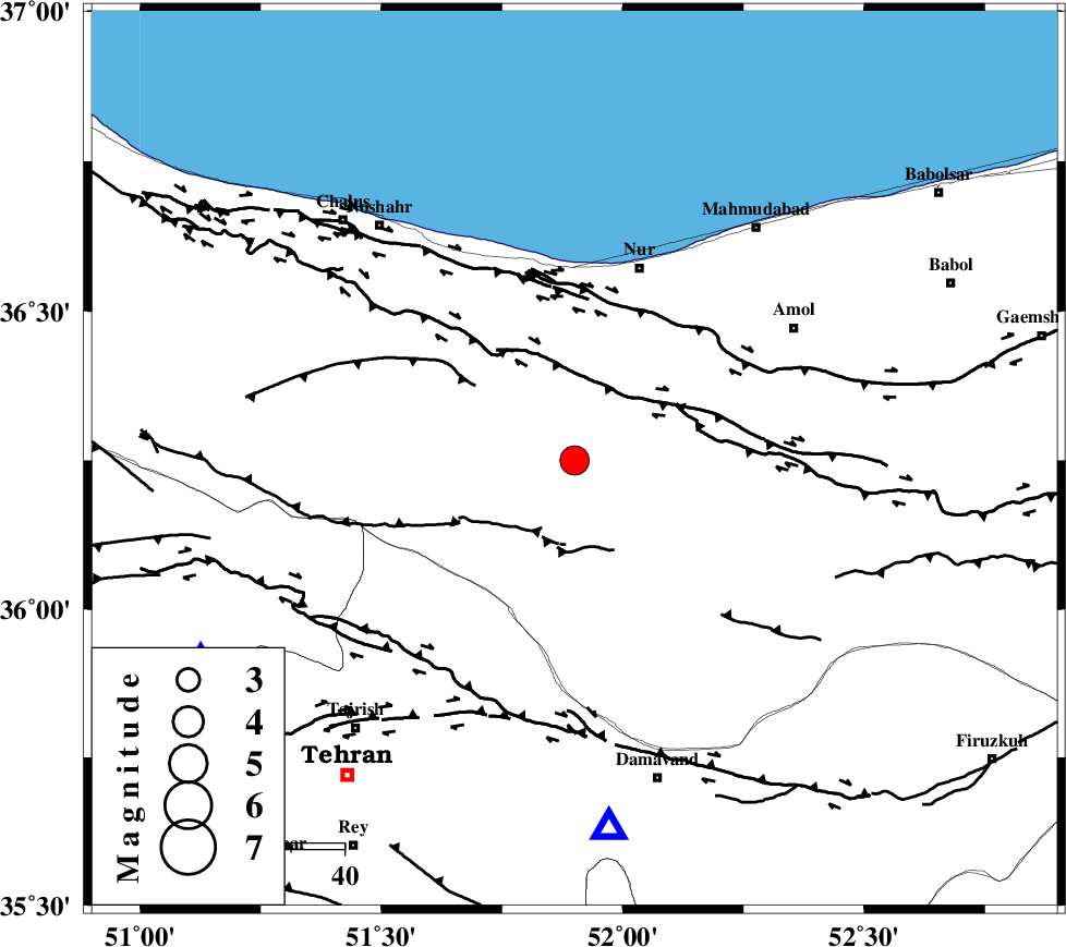 N_ALBORZ_F (Length: 360 km) , Distance to epicenter: 15 km | |