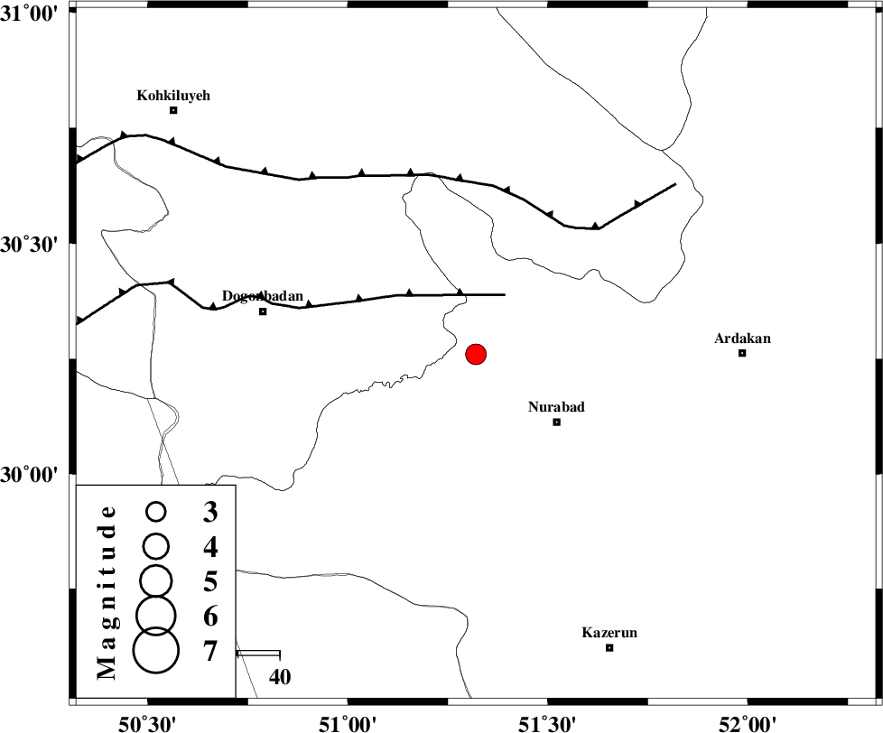 KAZERUN_F (Length: 96 km) , Distance to epicenter: 18 km | |