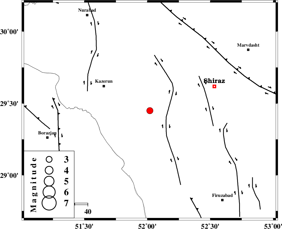 KAZERUN_F (Length: 96 km) , Distance to epicenter: 50 km | |
