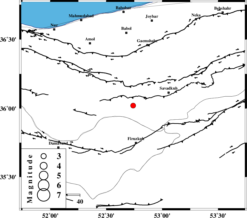 N_ALBORZ_F (Length: 360 km) , Distance to epicenter: 17 km | |