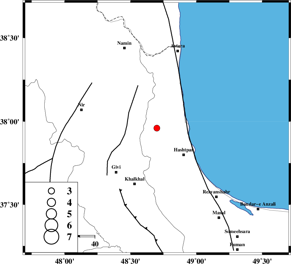 TALESH_F (Length: 258 km) , Distance to epicenter: 21 km | |