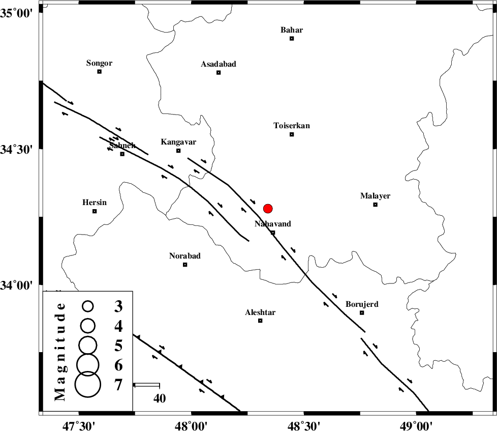 NAHAVAND_F (Length: 102 km) , Distance to epicenter: 5 km | |
