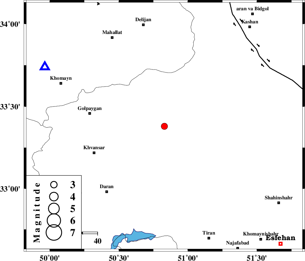 KASHAN_F (Length: 44 km) , Distance to epicenter: 79 km | |