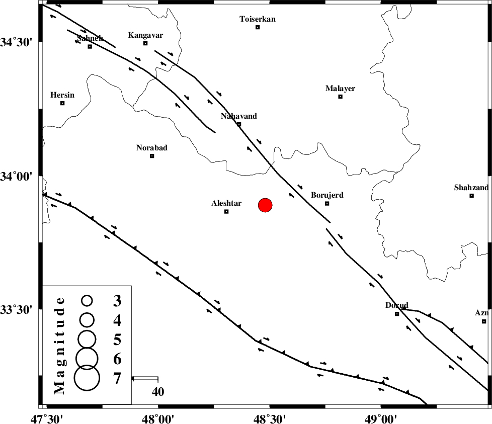 NAHAVAND_F (Length: 102 km) , Distance to epicenter: 14 km | |
