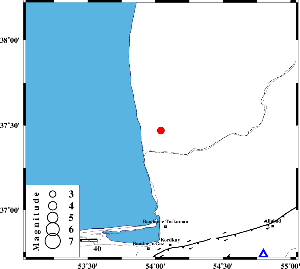 KHAZAR_F (Length: 523 km) , Distance to epicenter: 75 km | |