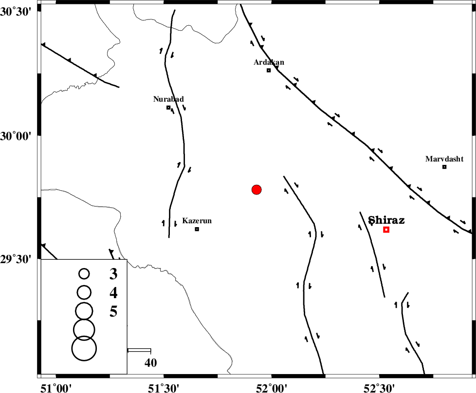 | KAZERUN_F (Length: 96 km) , Distance to epicenter: 34 km | |