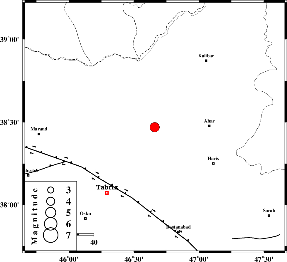N_TABRIZ_F1 (Length: 222 km) , Distance to epicenter: 50 km