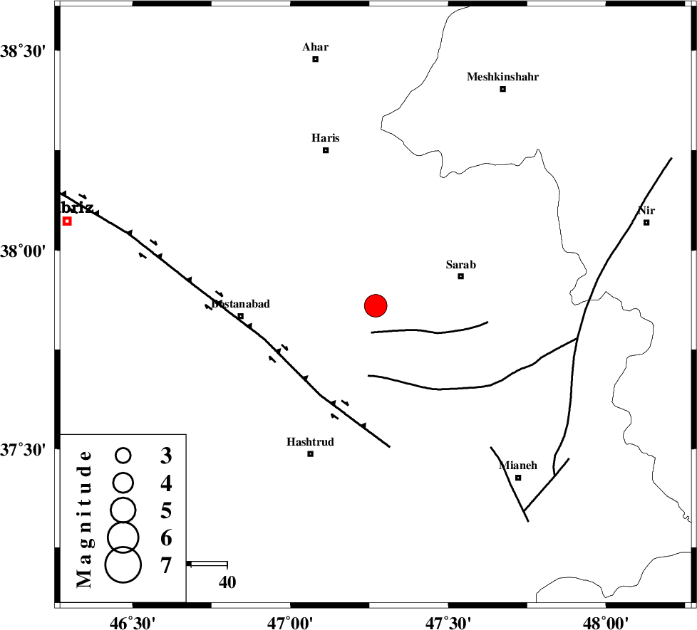 | N_TABRIZ_F1 (Length: 222 km) , Distance to epicenter: 29 km | |