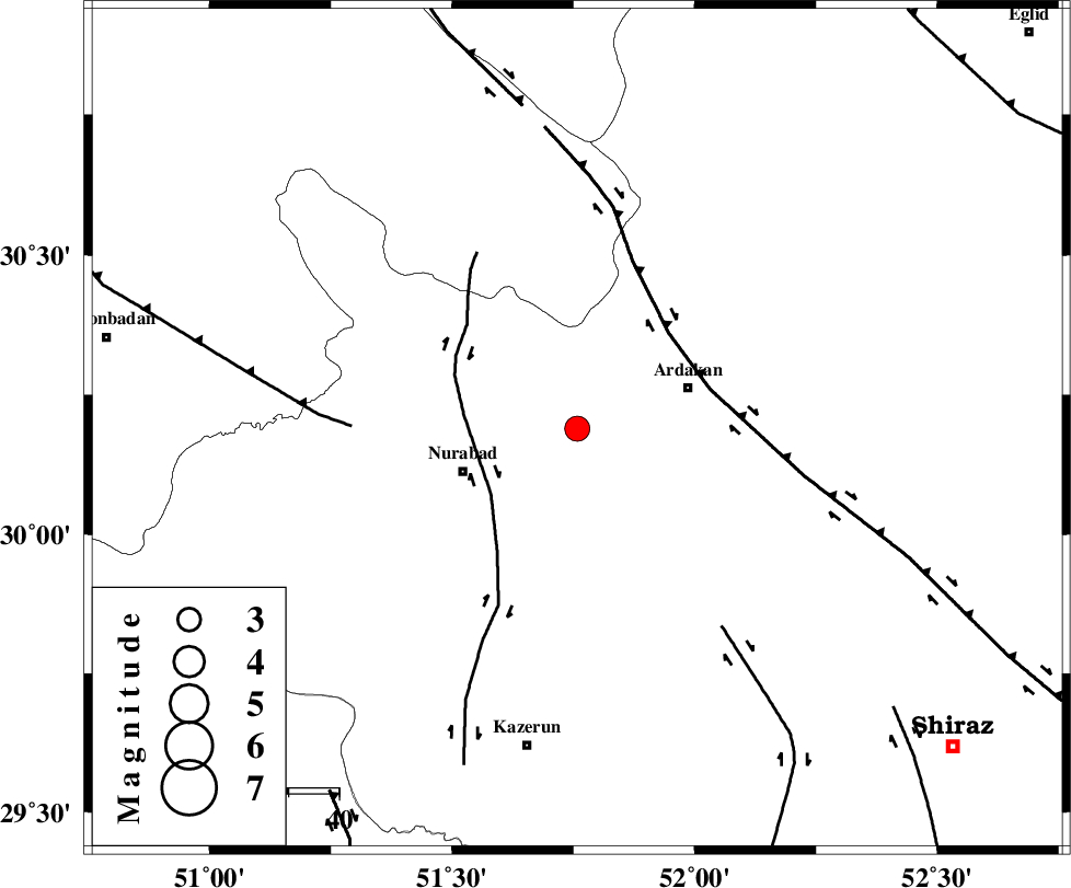 | KAZERUN_F (Length: 96 km) , Distance to epicenter: 22 km | |