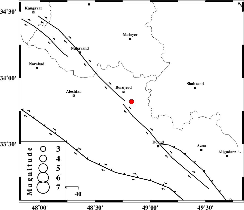 | MAIN_ZAGROS_R_F (Length: 1106 km) , Distance to epicenter: 43 km | |