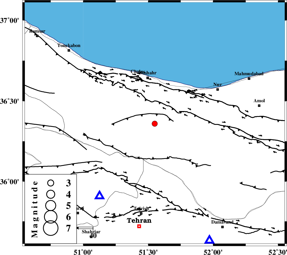 | N_ALBORZ_F (Length: 360 km) , Distance to epicenter: 14 km | |