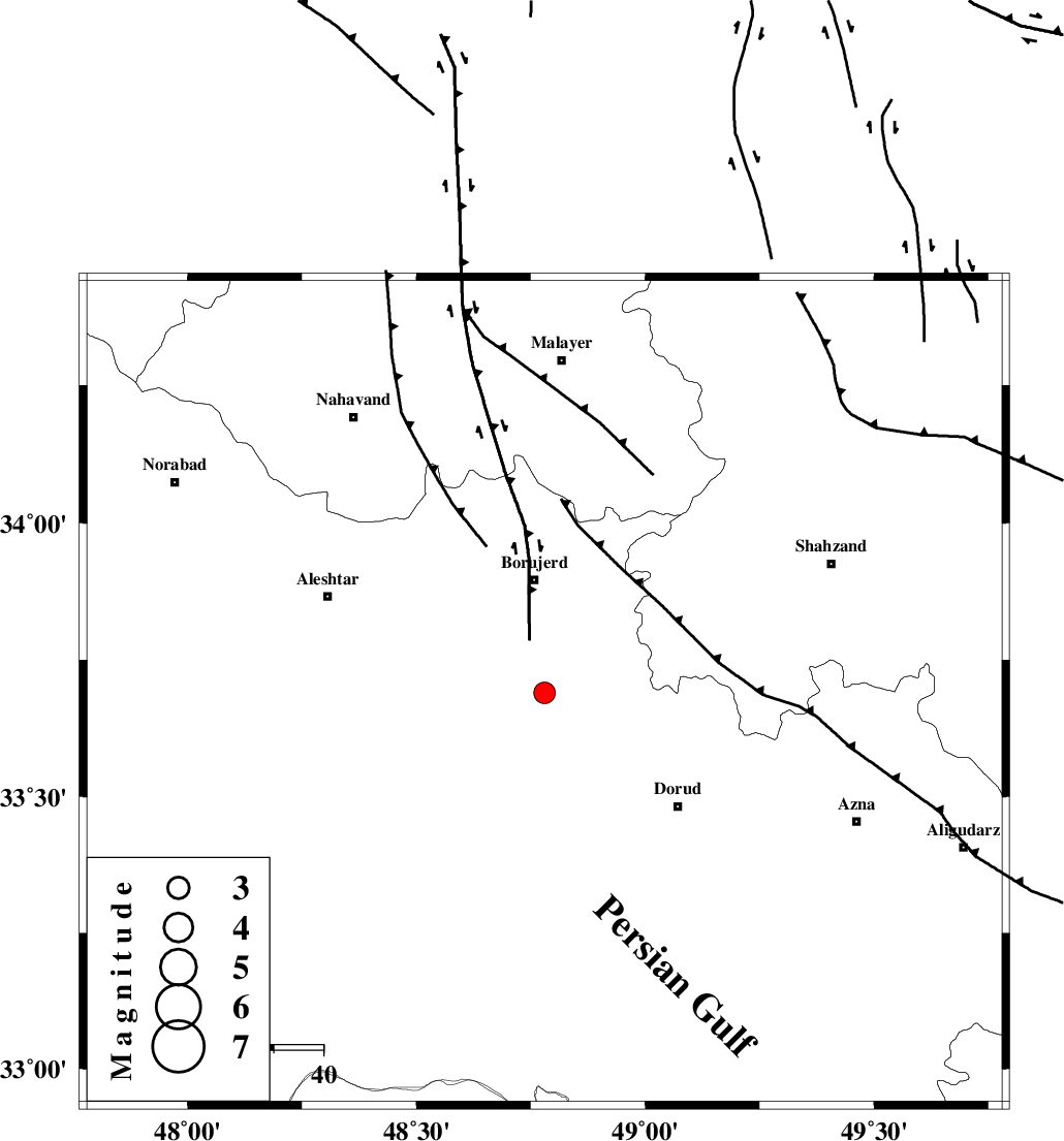 | MAIN_ZAGROS_R_F (Length: 1106 km) , Distance to epicenter: 36 km | |