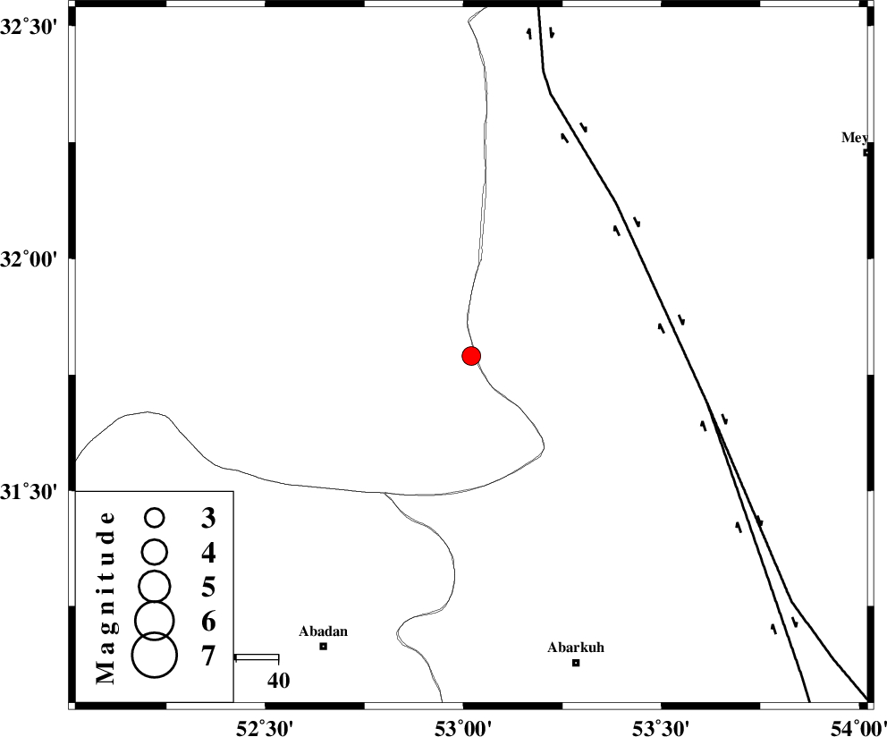 | SHAHR_E_BABAK_F2 (Length: 272 km) , Distance to epicenter: 57 km | |