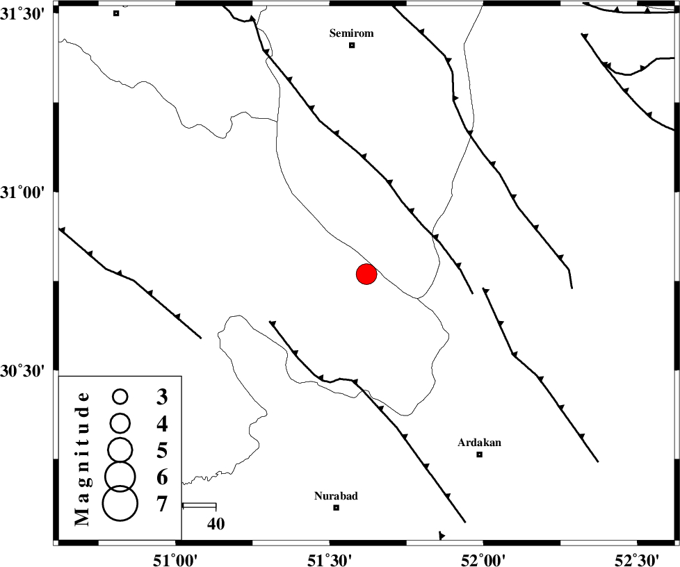 | KAZERUN_F (Length: 96 km) , Distance to epicenter: 30 km | |