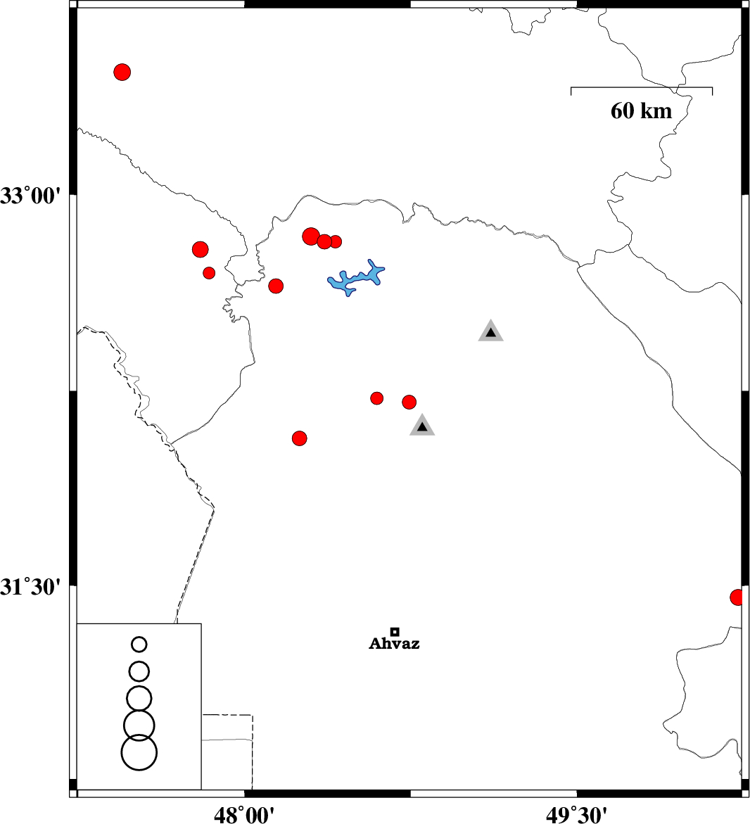 | 2015/07/21 | 20:06:17.6 | 00:36:17.6 | 32.222 | 48.597 | 14 | ML2.6 | Khoozestan Province, 26 km South-East of Dezful | ||