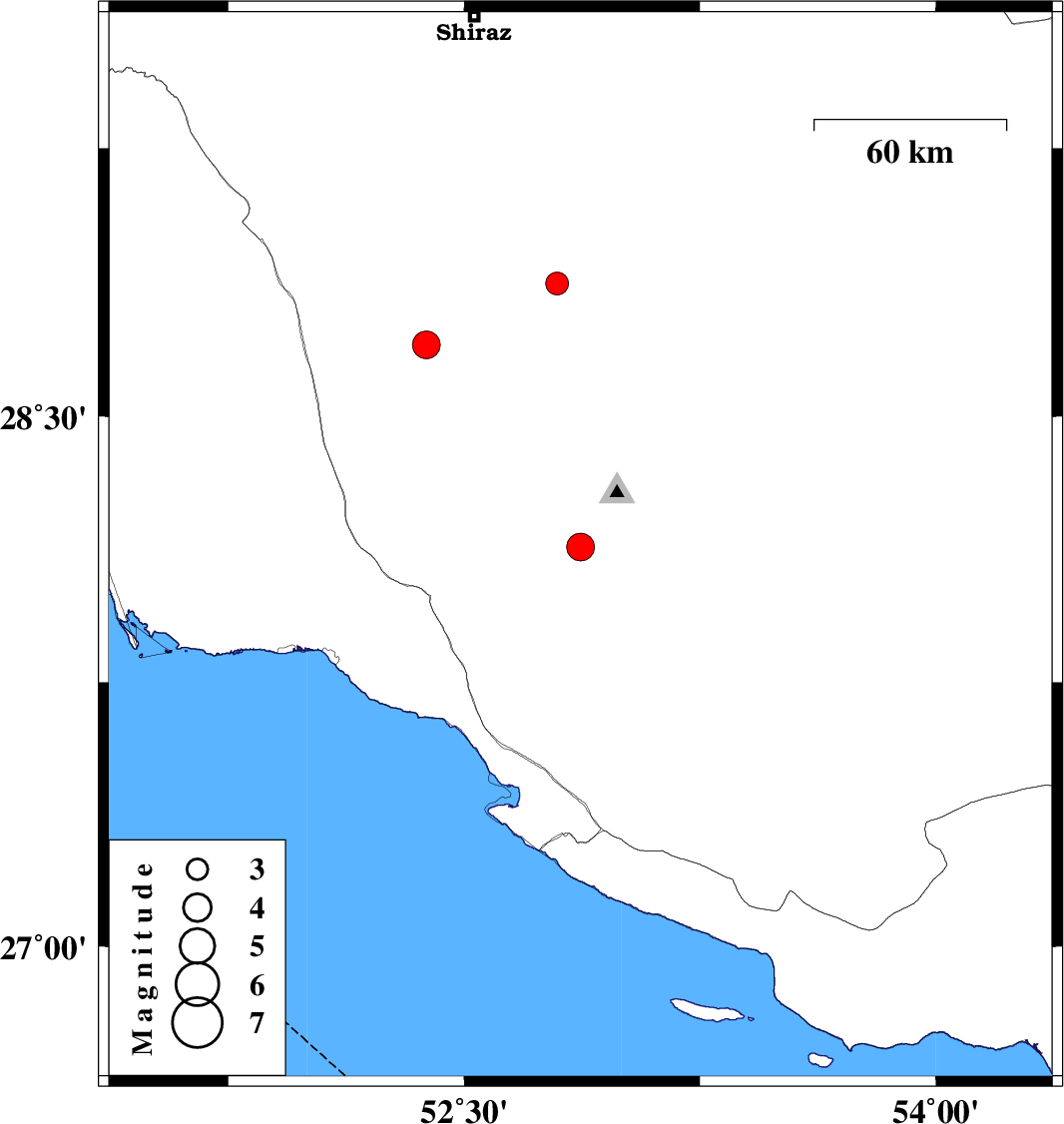 | 2015/06/26 | 05:16:04.2 | 09:46:04.2 | 28.7 | 52.38 | 6 | ML3.9 | Fars Province, 25 km South-West of Firuz Abad |