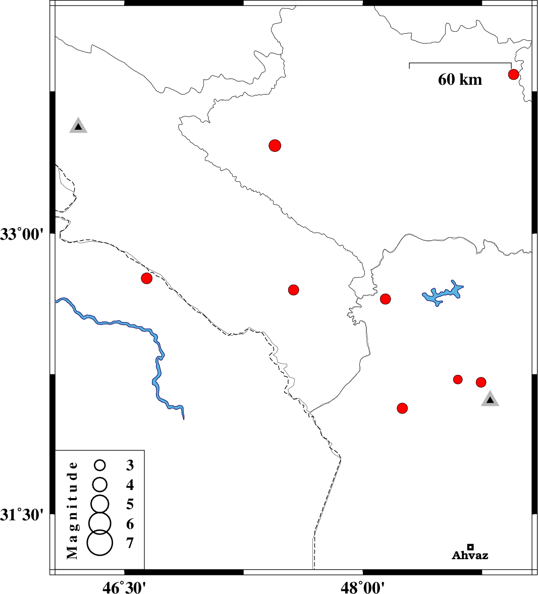 | 2015/08/03 | 15:25:12.5 | 19:55:12.5 | 32.7 | 47.564 | 14 | ML2.9 | Ilam Province, 28 km -East of Dehloran | ||