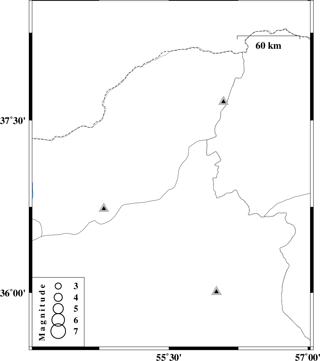 | 2015/08/06 | 21:17:59.3 | 01:47:59.3 | 37.024 | 55.526 | 26 | ML2.8 | Golestan Province, 26 km South-East of Minodasht |
