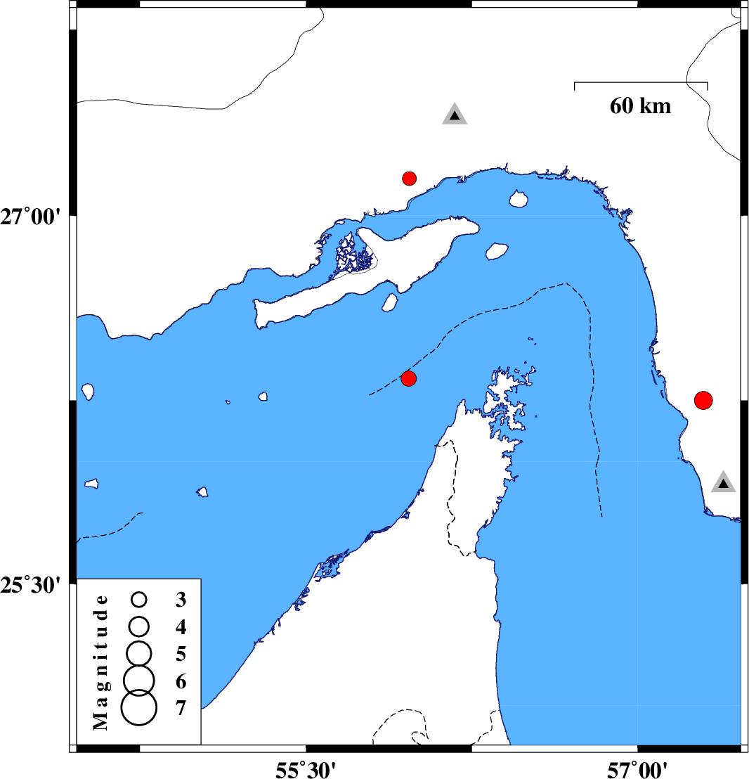 | 2015/08/08 | 22:12:12.5 | 02:42:12.5 | 26.338 | 55.964 | 15 | ML3.1 | Persian Gulf, 75 km South-West of Qeshm | ||