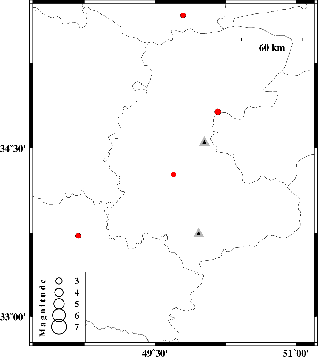 | 2015/08/14 | 20:26:46.1 | 00:56:46.1 | 33.724 | 48.681 | 15 | ML2.5 | Lorestan Province, 20 km South of Borujerd | ||