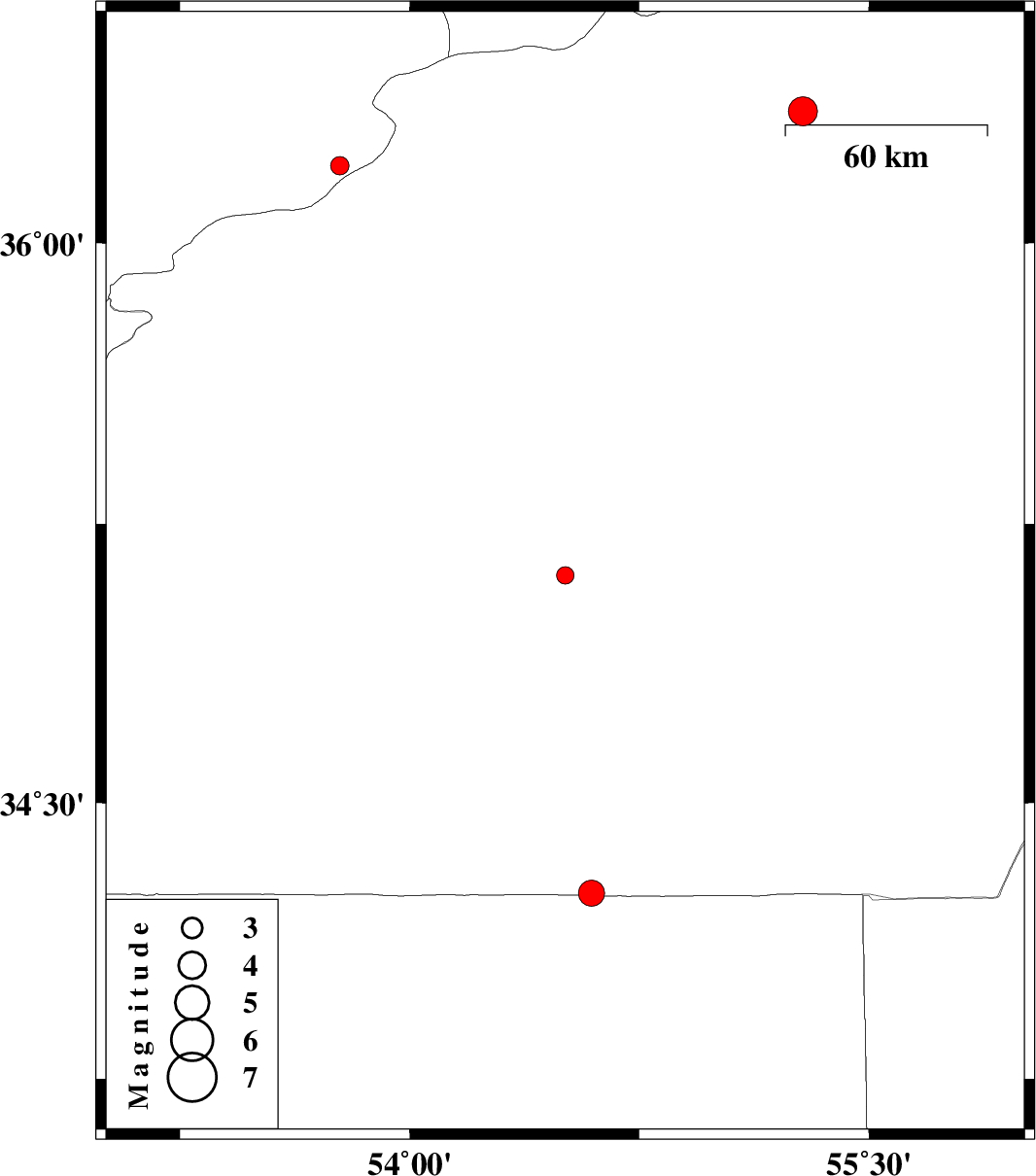 | 2015/08/17 | 17:36:00.9 | 22:06:00.9 | 36.348 | 55.284 | 6 | ML4.3 | Semnan Province, 29 km -East of Shahrud | ||