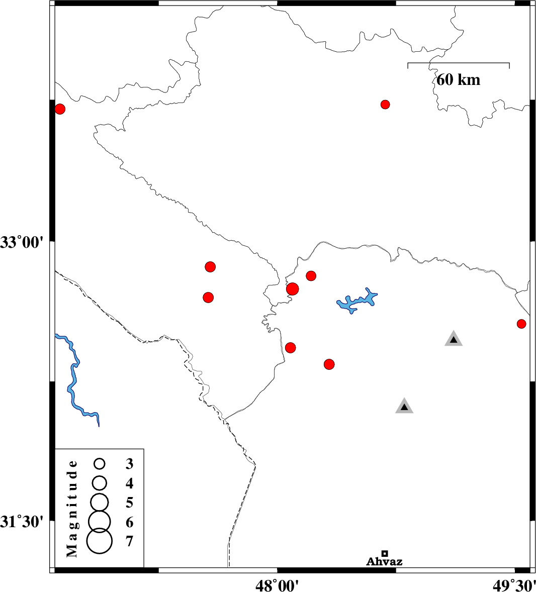 | 2015/08/03 | 15:25:12.5 | 19:55:12.5 | 32.7 | 47.564 | 14 | ML2.9 | Ilam Province, 28 km -East of Dehloran |