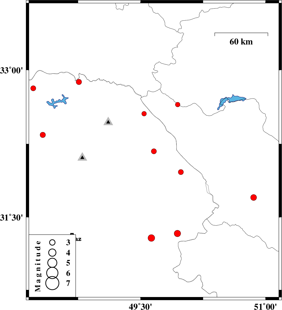 | 2015/08/22 | 11:58:02.7 | 16:28:02.7 | 32.558 | 49.542 | 16 | ML2.5 | Khoozestan Province, 45 km North-East of Lali | ||