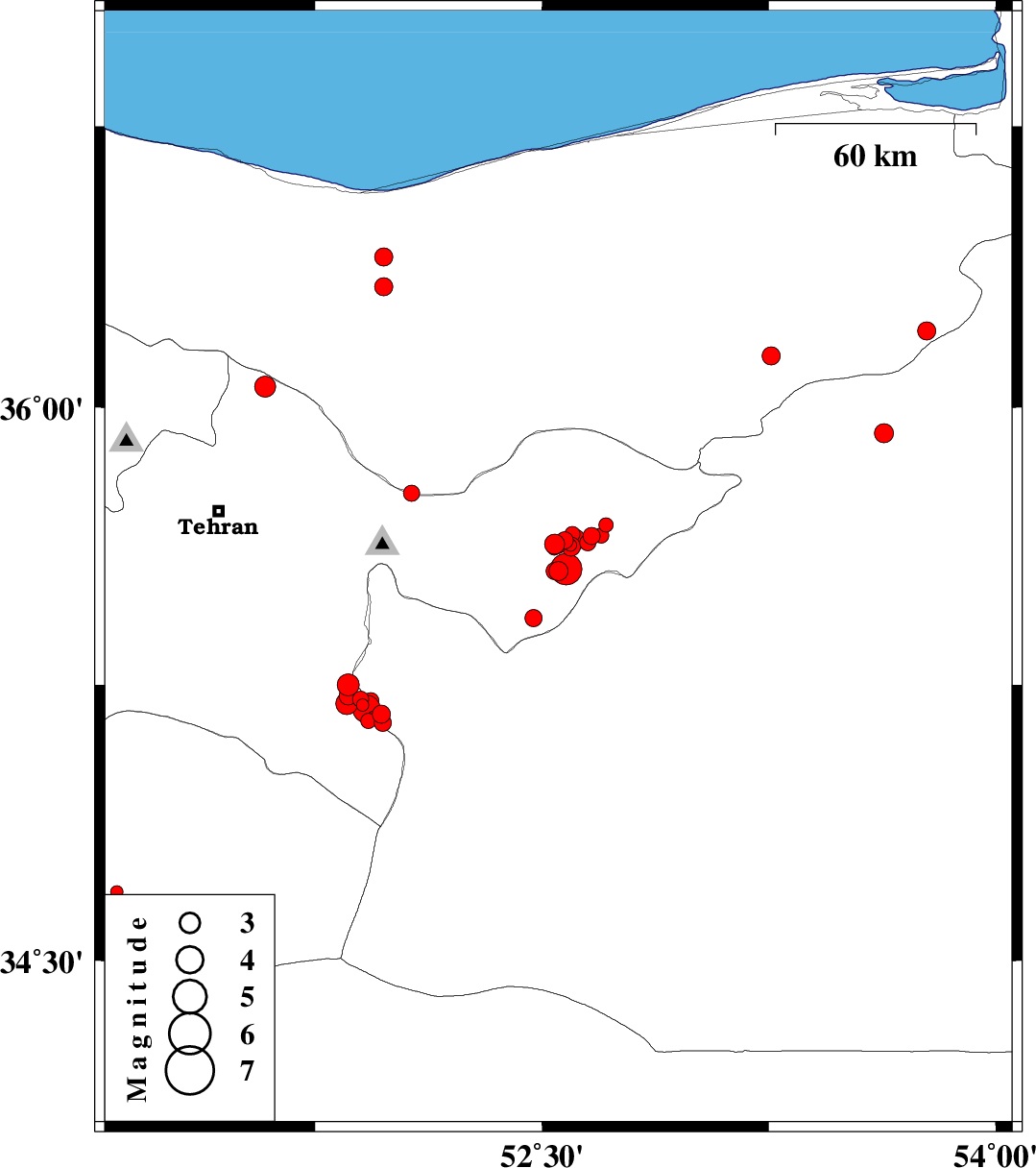 | 2015/08/25 | 18:03:16.7 | 22:33:16.7 | 35.619 | 52.54 | 14 | ML2 | Tehran Province, 25 km South-West of Firuzkuh | ||