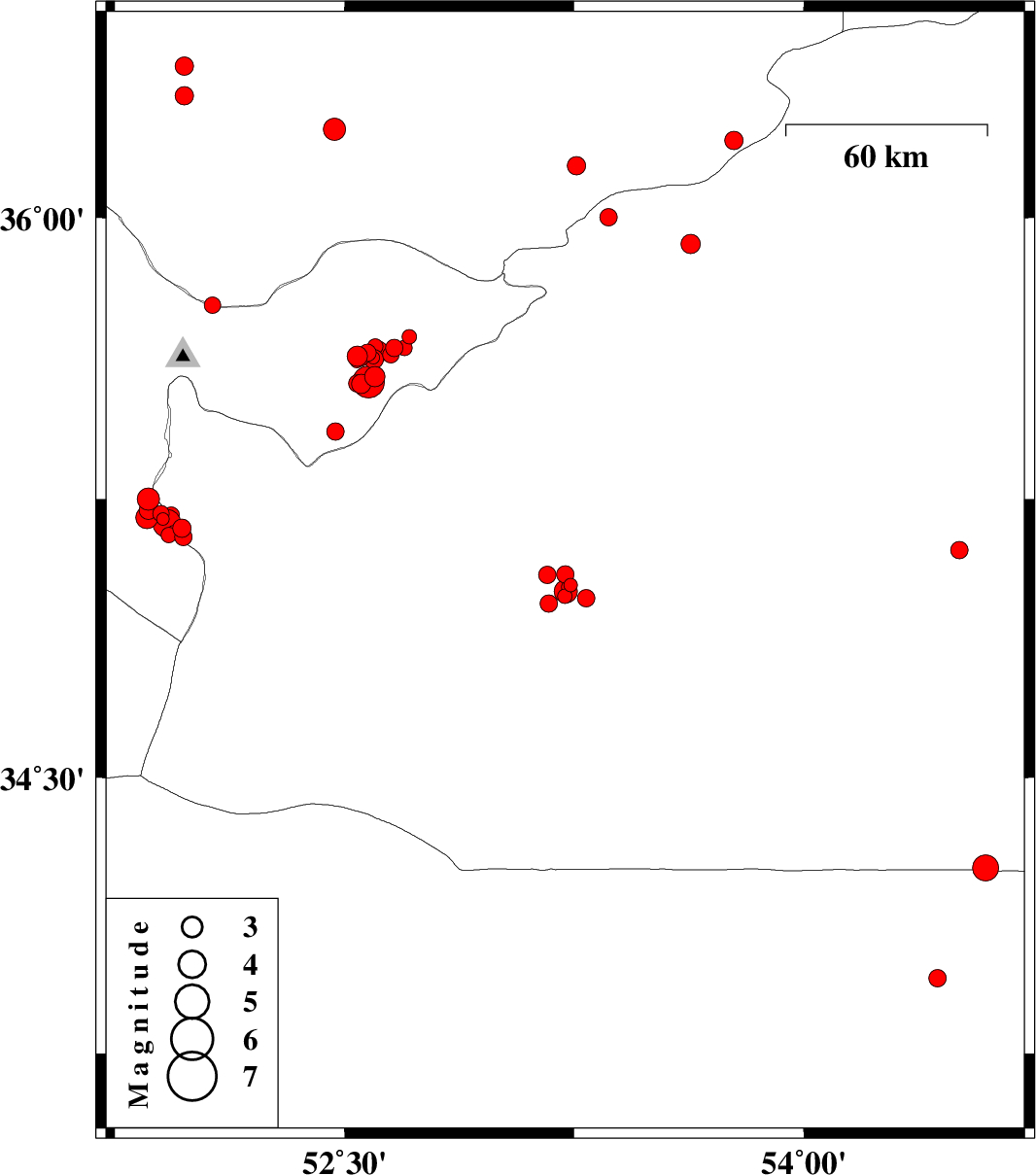 | 2015/09/05 | 07:08:20.0 | 11:38:20.0 | 34.969 | 53.167 | 17 | ML2.6 | Semnan Province, 70 km South-West of Semnan | ||